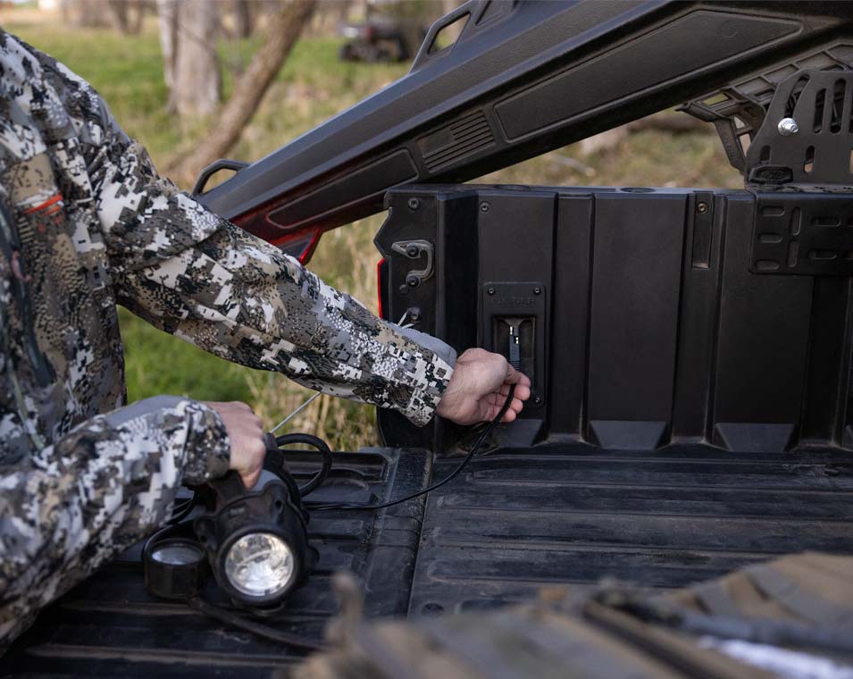 • 12V Cargo Box Power Port with Integrated Dash Switch
