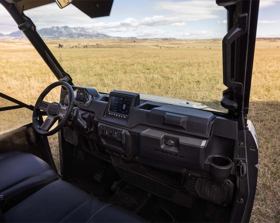 Premium Cut & Sew Seats with Contoured Seatbacks and Embroidered Polaris Branding, Premium Steering Wheel and Interior Accents, Polaris Pulse Electrical System (6 position), DC Outlets, Dual USB Port, Cargo Box Located 12V SAE Port with In-Dash On/Off Switch.