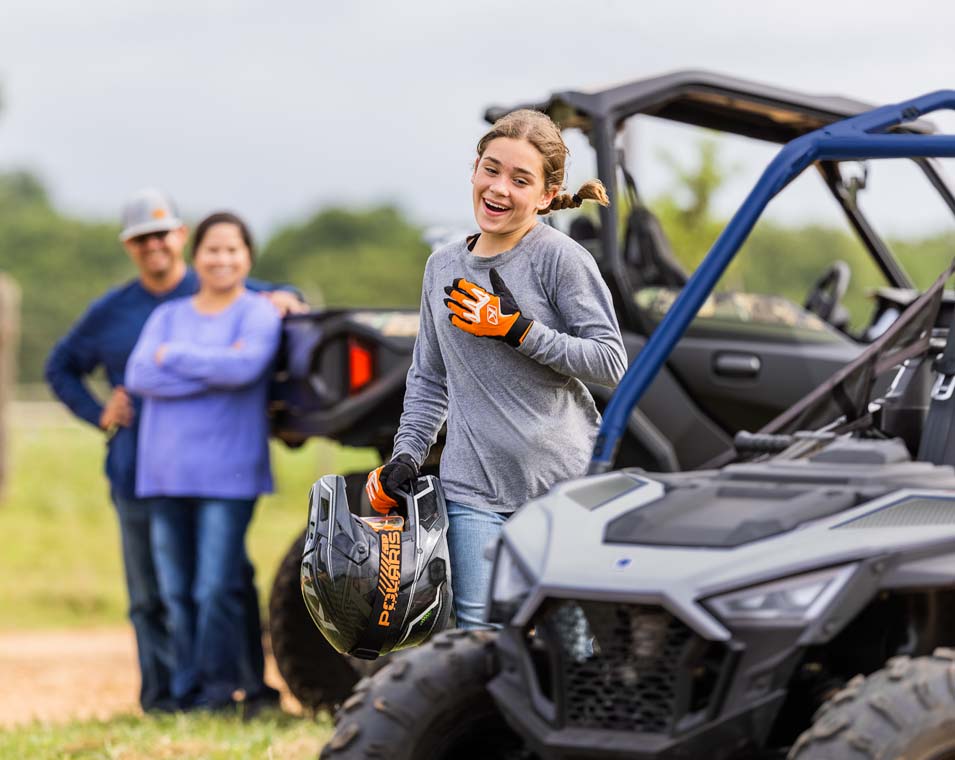 With​ 180cc EFI engine, adjustable seat and steering wheel, passenger seating, and accessories allow younger riders to grow with their side-by-side. Made for riders ages 10+.